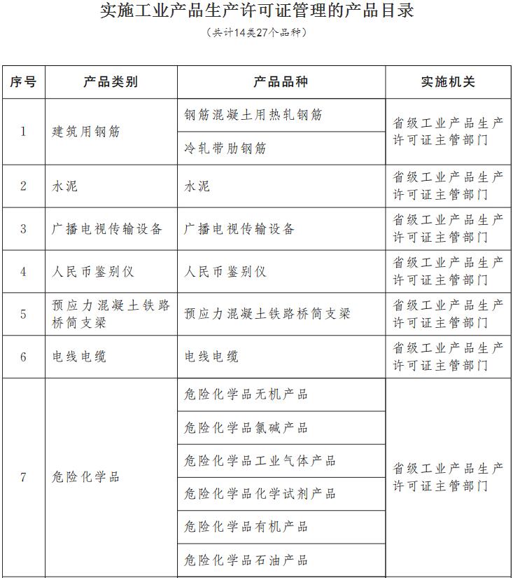 國務(wù)院印發(fā)《關(guān)于調(diào)整完善工業(yè)產(chǎn)品生產(chǎn)許可證管理目錄的決定》