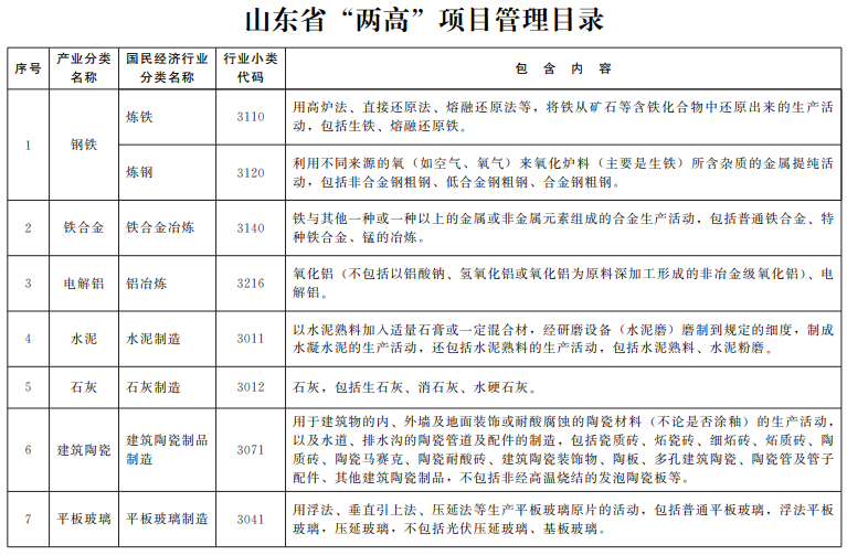 《若干措施》明確了“兩高”項(xiàng)目范圍界限,將“六大高耗能行業(yè)”中的煤電、煉化、焦化、鋼鐵、水泥等16個(gè)行業(yè)上游初加工、高耗能高排放環(huán)節(jié)投資項(xiàng)目作為“兩高”項(xiàng)目。“兩高”項(xiàng)目范圍根據(jù)國(guó)家規(guī)定和我省實(shí)際動(dòng)態(tài)調(diào)整。