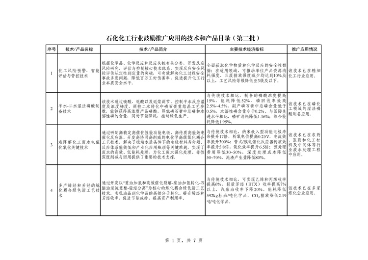 為落實(shí)《關(guān)于“十四五”推動(dòng)石化化工行業(yè)高質(zhì)量發(fā)展的指導(dǎo)意見(jiàn)》,推動(dòng)石化化工行業(yè)高端化、智能化、綠色化發(fā)展,經(jīng)地方及相關(guān)單位推薦、專家評(píng)審和對(duì)外公示,現(xiàn)將《石化化工行業(yè)鼓勵(lì)推廣應(yīng)用的技術(shù)和產(chǎn)品目錄(第二批)》予以印發(fā)。請(qǐng)各地工業(yè)和信息化主管部門(mén)加大宣傳推廣和政策支持力度,推動(dòng)石化化工行業(yè)轉(zhuǎn)型升級(jí)。